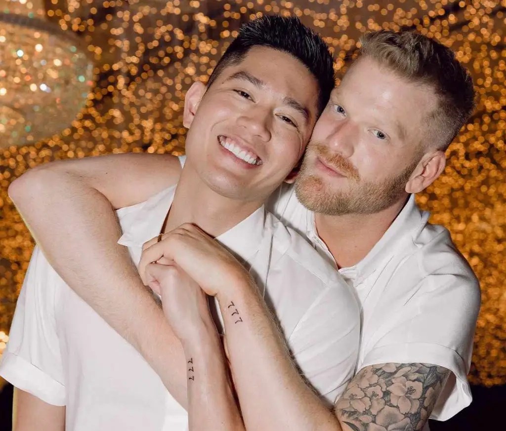 Mark Manio wedding with scott hoyingBoth Tattooed their wedding date on their wrist.